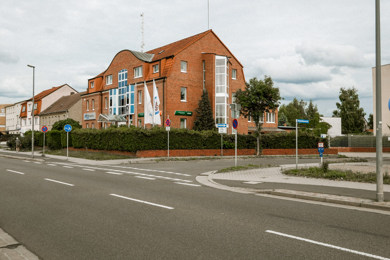 Das Büro- und Werkstadtgebäude befindet sich im Stadtteil Bitterfeld-Wolfen – direkt an der B100 und verfügt dadurch über eine gute Anbindung zur A9. Das Grundstück liegt in einem Mischgebiet / Kerngebietsbebauung. Eine Bushaltestelle sowie der Bahnhof sind in 5 Gehminuten zu erreichen.