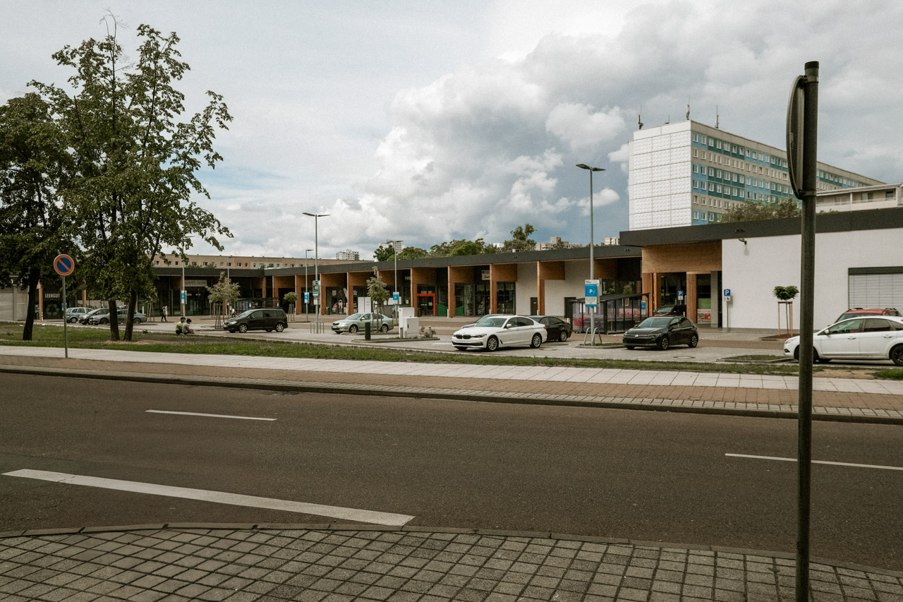 Das Fachmarktzentrum liegt in zentraler Lage im Stadtteil Halle-Neustadt, der durch sanierte Plattenbauten und eine gut ausgebaute Infrastruktur geprägt ist.