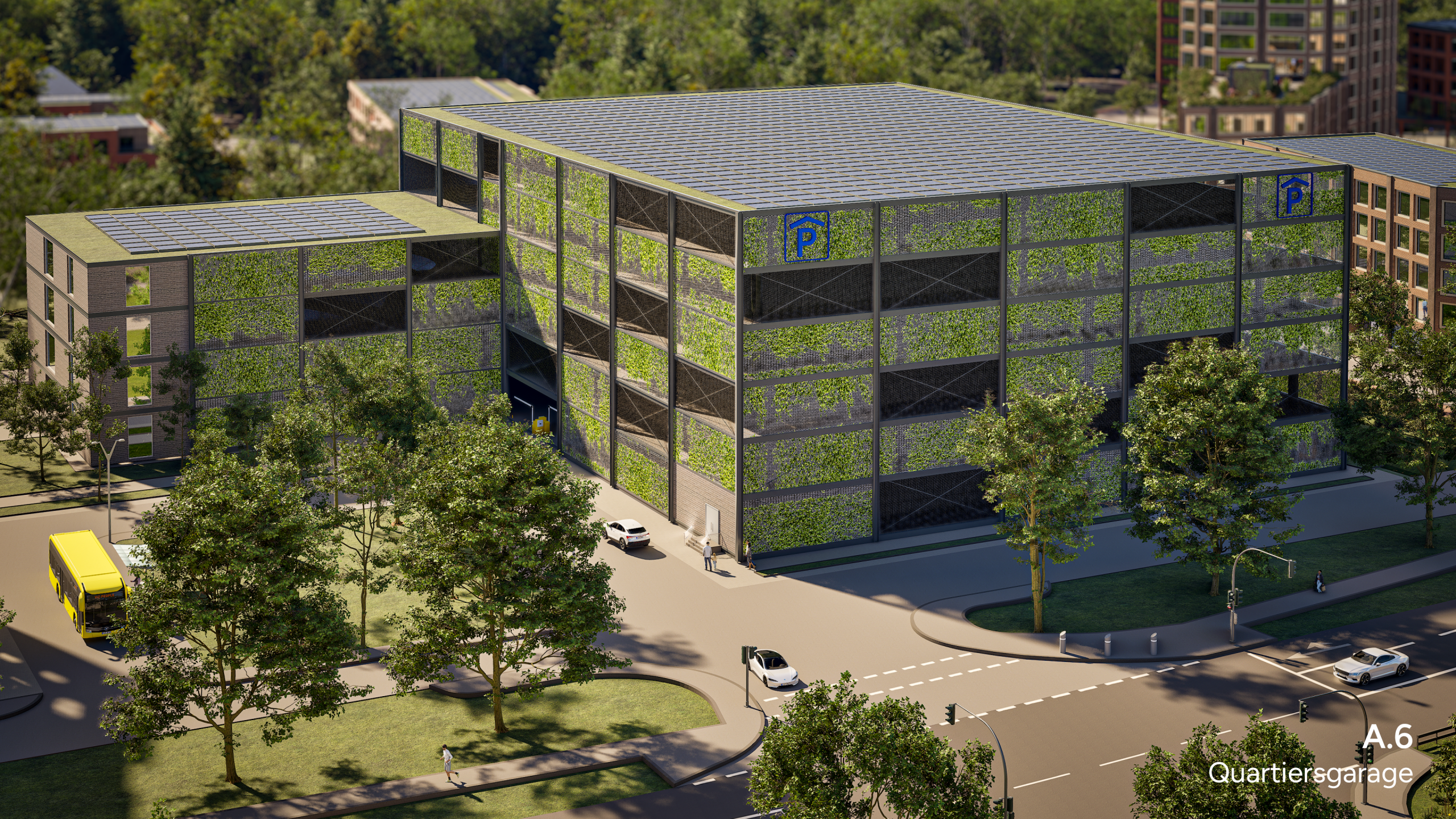 • Par­ken: ca. 800 PKW-Stell­plät­ze in der Quartiersgarage
